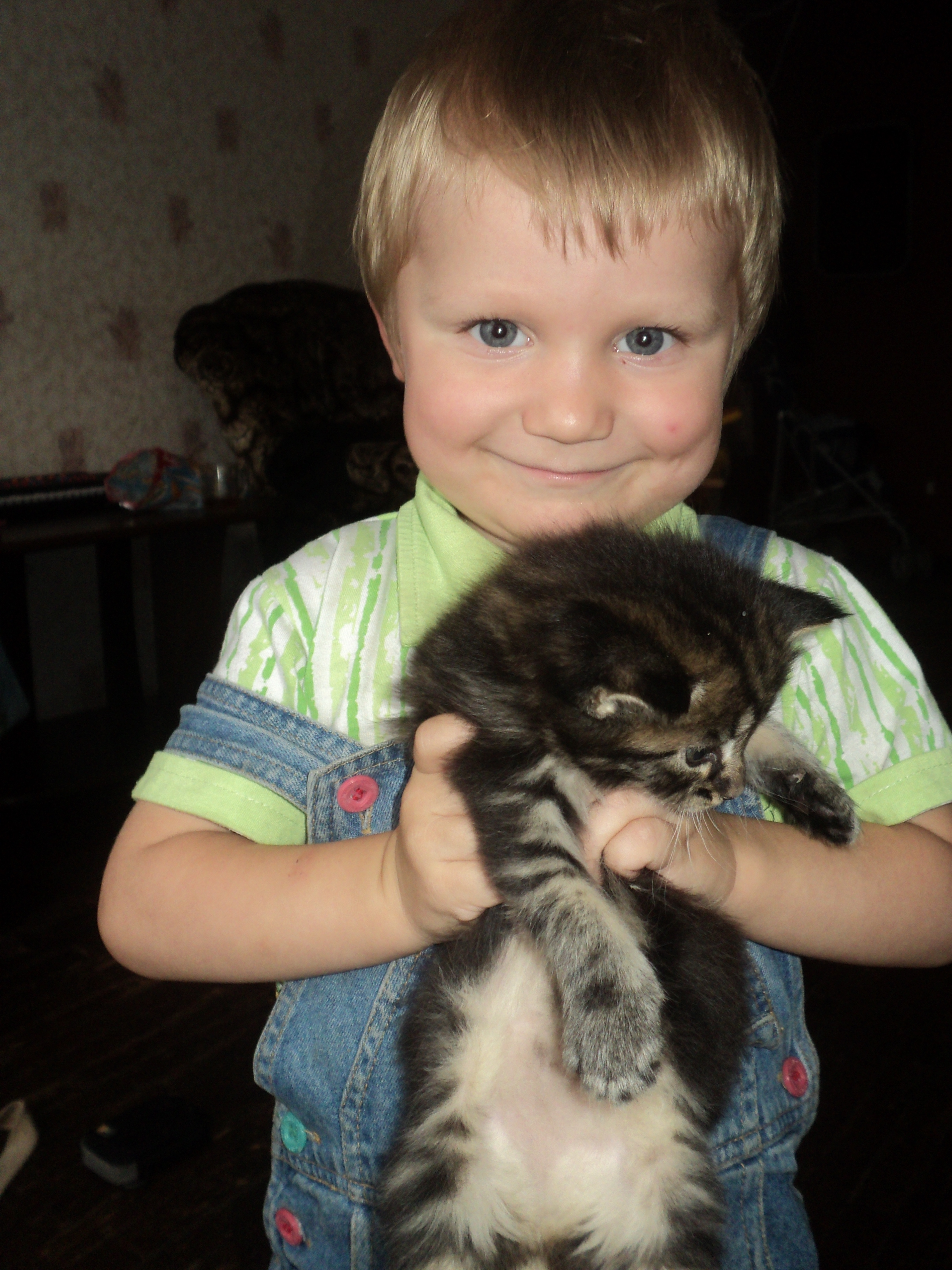 Однажды мы с мужем побывали на выставке кошек и... были просто очарованы удивительными мейн кунами!!! Решение завести у себя дома такое красивое и грациозное животное пришло буквально в считанные минуты. А потом .... было время долгого ожидания и поиска именно своей кошки, самой любимой, самой лучшей, самой своей. И вот... на мой 30-летний юбилей мой любимый муж сделал мне самый лучший подарок - подарил мне мое чудо - мою любимую девочку - кошку Беллатриссу. Но на этом мы не остановились... и буквально через несколько месяцев в нашем доме появилась еще одна представительница этой породы - удивительная кошечка О"хара. Мы просто не смогли устоять перед ее хищным взглядом и добрым сердцем. Меня очень волновал момент общения кисок с моими детьми, младшему на тот момент было 1,6 года. Но... все опасеня были напрасны, за все время ни одна кошка не позволили себе обидеть малыша, но и себя в обиду они не дают. Они удивительны и прекрасны, это начинаешь понимать только когда они появляются в твоем доме!!!